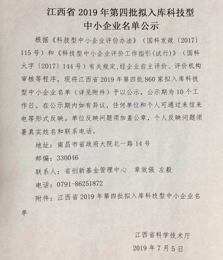 7月5日,江西省科技厅公示了江西省2019年第四批拟入库科技型中小企业名单,江西慧谷互联商业运营管理有限公司顺利通过此次认定!
